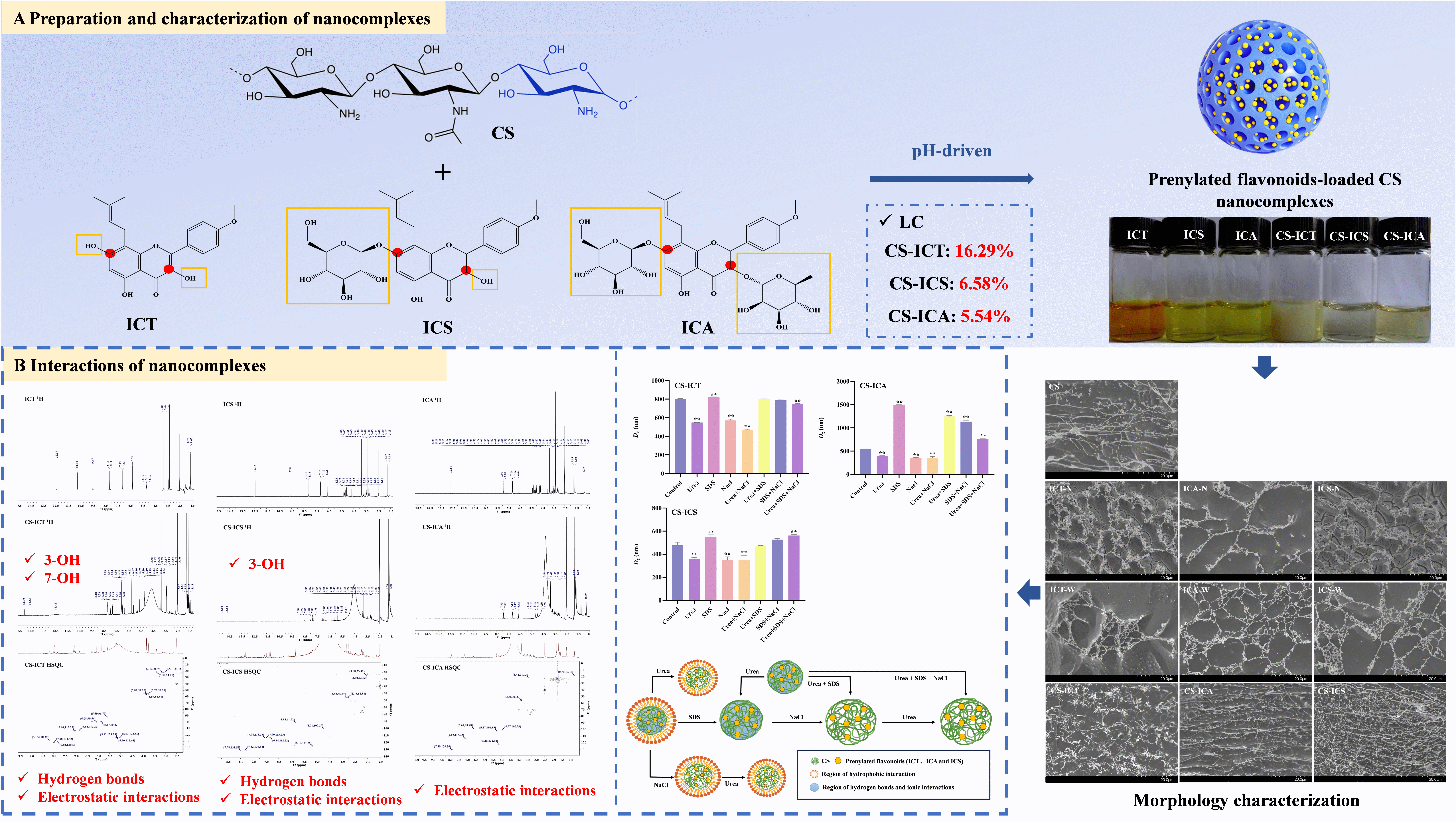 圖. 殼聚糖—異戊烯基類黃酮納米復合物及其形成的關鍵作用力